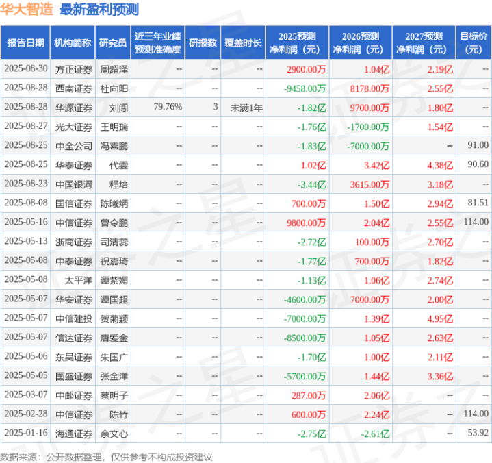 证券之星数据中心根据近三年发布的研报数据计算,华源证券刘闯研究员团队对该股研究较为深入,近三年预测准确度均值为79.76%,其预测2025年度归属净利润为亏损1.82亿。
